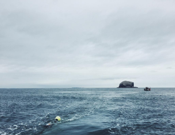 After reeling six or seven now lobsters now resolved to clicking on top of each other in a bucket next to us, Sam decides to take us up to Bass Rock. We sail out over a mile offshore to the volcanic rock that’s become a colony for gannets. The rock might look sizeable back on land at North Berwick, but up-close, it’s massive. Described by David Attenborough as “a wildlife wonder of the world”, it looms over our tiny boat as all four of us gaze upwards. The gannets have taken over the island, meaning humans are rarely allowed to step foot on it.